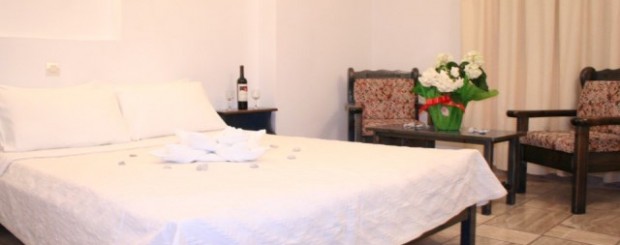 Facilitati camere Hotel Drossos: camerele sunt spatioase, echipate cu TV, A/C, telefon, frigider, uscator de par, seif, balcon/terasa.