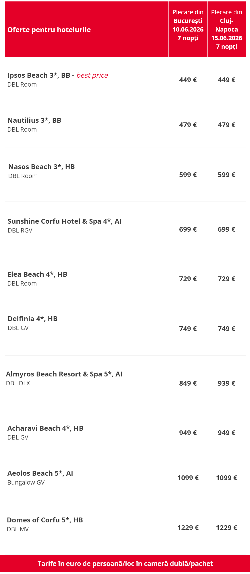 Alege un pachet charter Grecia, cu recomandarea noastra charter Corfu ca destinatie de vacanta sau luna de miere. Fie ca doresti o oferta Grecia all inclusive sau doar oferta Corfu, oferte last minute Corfu sau oferte early booking, agentia noastra de turism iti ofera cea mai ieftina vacanta in Corfu si cele mai ieftine oferte in Grecia.