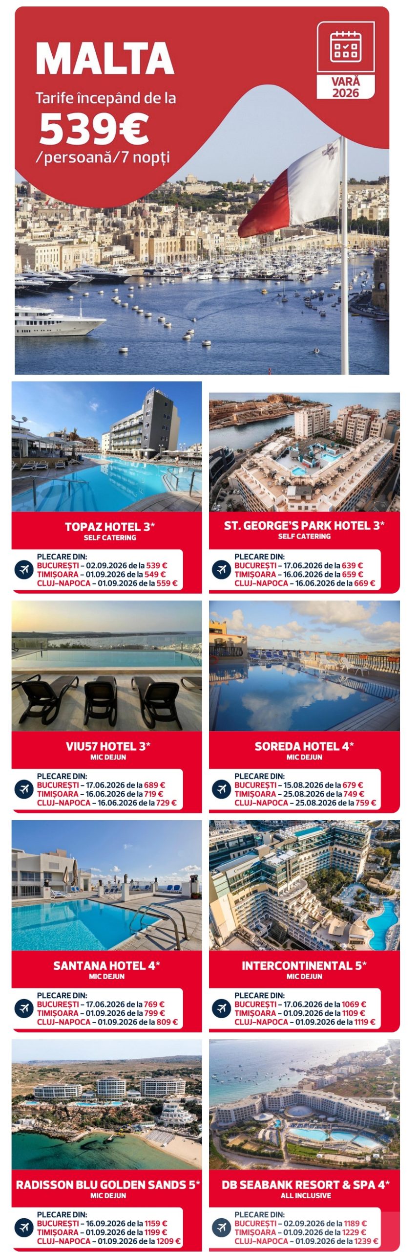 Alege din timp una dintre oferte noastre pe charter Malta 2026, pentru a beneficia de cele mai ieftine oferte in Malta.