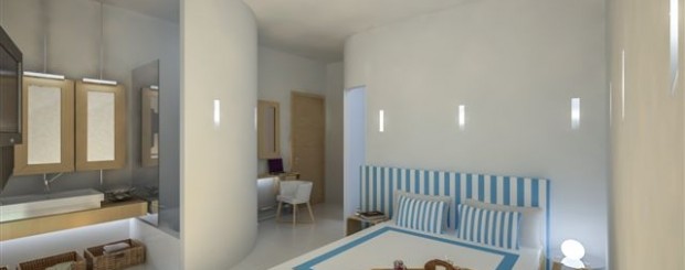 Localizare: Hotel Cavo Bianco se va deschide in 2014, se afla la cativa metri de plaja din zona Kamari – Monolithos, unde sunt amenajate sezlonguri, umbrele si infrastructura specifica pentru a va bucura de sporturile nautice.
