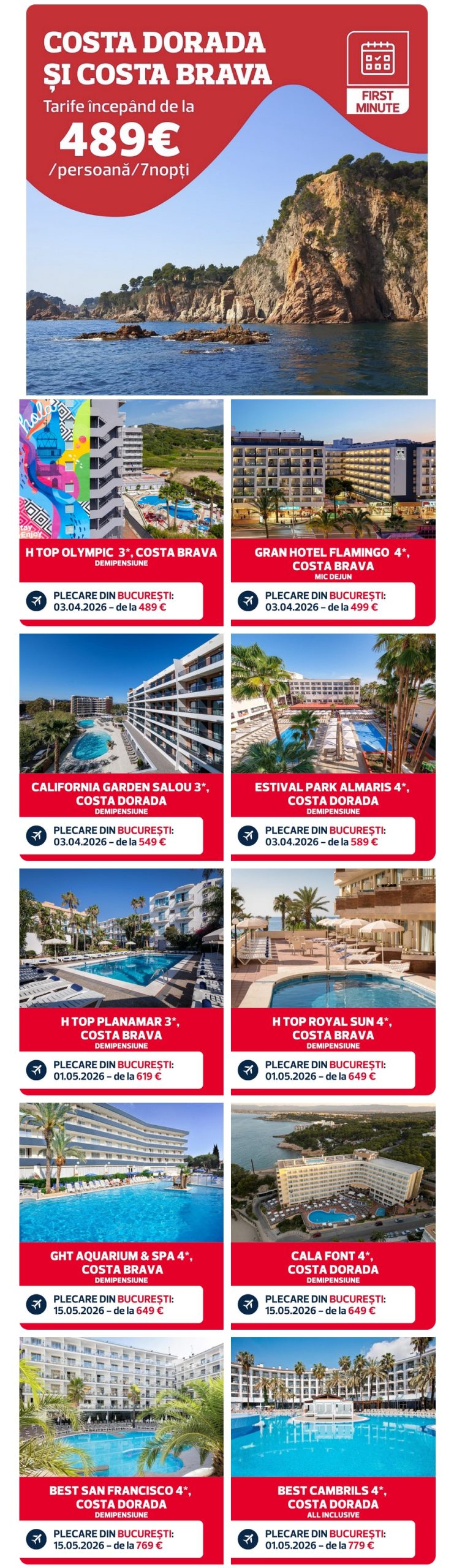 In fiecare zi apar oferte speciale sau oferte last minute la diferite programe turistice, charter Spania sau vacanta Costa Brava; pentru a beneficia de cea mai buna oferta turistica actualizata privind un pachet charter Costa Brava, contactati agentia de turism All Inclusive Travel.