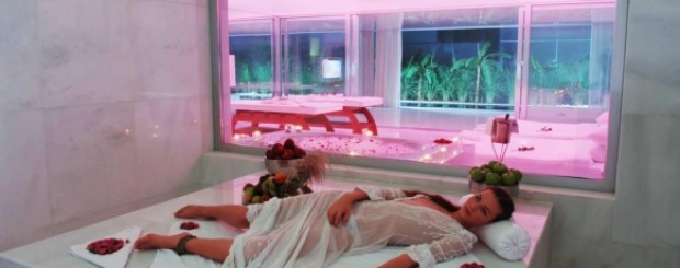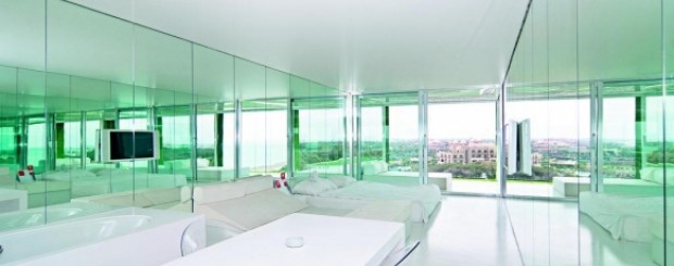Design deosebit. Este lider in Europa la categoria „Cel mai bun hotel pentru cupluri”. Camere neobisnuite, albe, cu oglinzi si iluminare multicolora.
