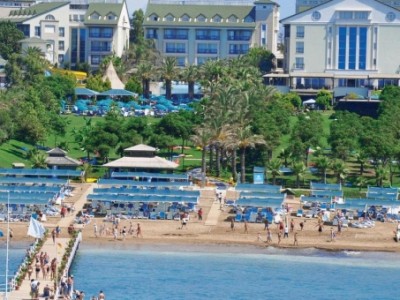 Charter Turcia 2014 – Antalya Side – Blue Waters Club  5*       Descriere hotel   Hotel: situat la 65 km de aeroportul Antalya, la 5 km de orasul Side, la 3 km de localitatea Titreyengöl, pe malul marii.   In anul 2001 a fost construita cladirea...
